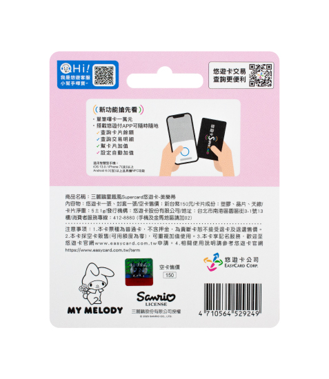內容物:悠遊卡一張、封套一張。