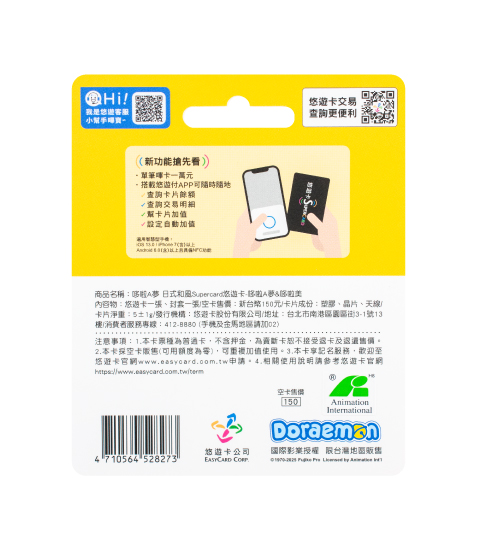 內容物:悠遊卡一張、封套一張。