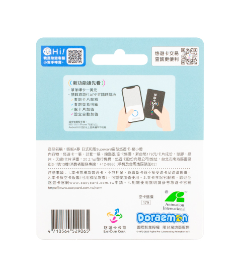 內容物:悠遊卡一張、封套一張。