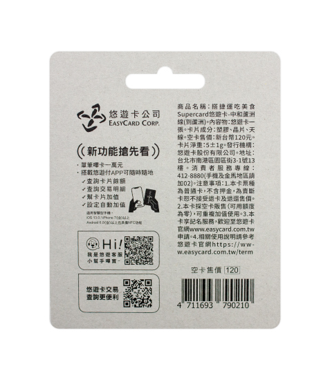 2.本卡採空卡販售(可用額度為零),可重複加值使用,詳細使用辦法請參閱內附之使用說明。
