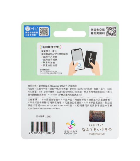 2.本卡採空卡販售(可用額度為零),可重複加值使用,詳細使用辦法請參閱內附之使用說明。