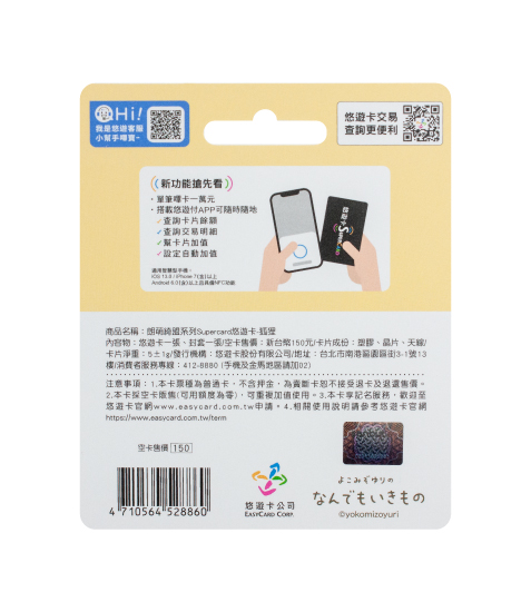 內容物:悠遊卡一張、封套一張。