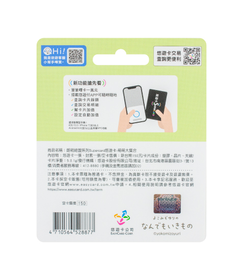 2.本卡採空卡販售(可用額度為零),可重複加值使用,詳細使用辦法請參閱內附之使用說明。