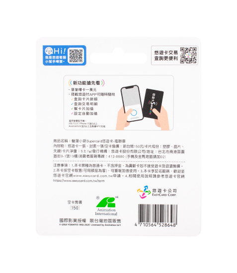 2.本卡採空卡販售(可用額度為零),可重複加值使用,詳細使用辦法請參閱內附之使用說明。