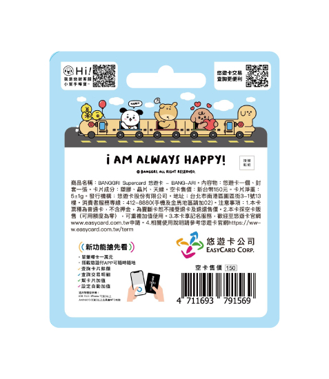 注意事項:1.本卡票種為普通卡,不含押金,為賣斷卡恕不接受退卡及退還售價。2.本卡採空卡販售(可用額度為零),可重複加值使用,詳細使用辦法請參閱內附之使用說明。3.本卡享記名服務,歡迎至悠遊卡官網www.easycard.com.tw申請。4.本卡於合作特約商店消費享UUPON紅利點數回饋,請先至UUPON官網UUPON.TW加入會員。