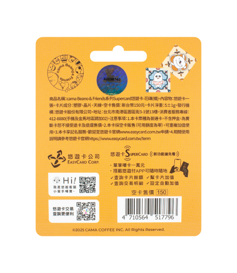 內容物:悠遊卡一張、封套一張。