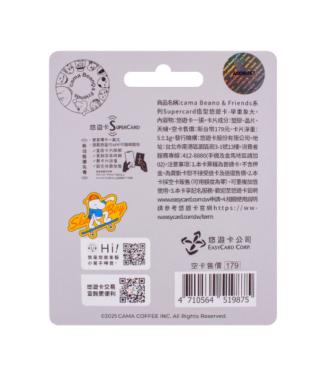 內容物:悠遊卡一張、封套一張。