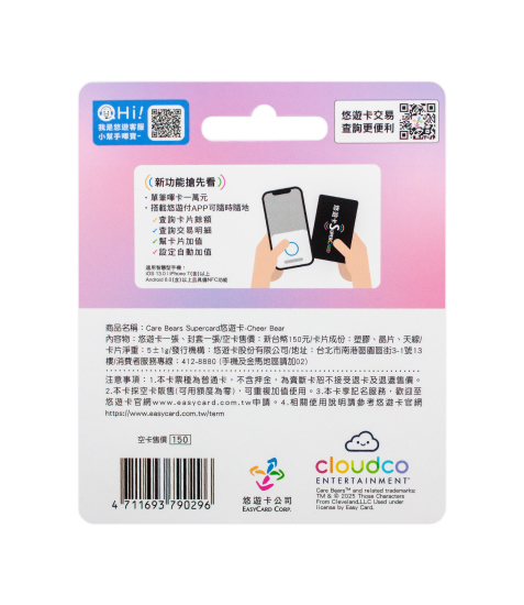 2.本卡採空卡販售(可用額度為零),可重複加值使用,詳細使用辦法請參閱內附之使用說明。