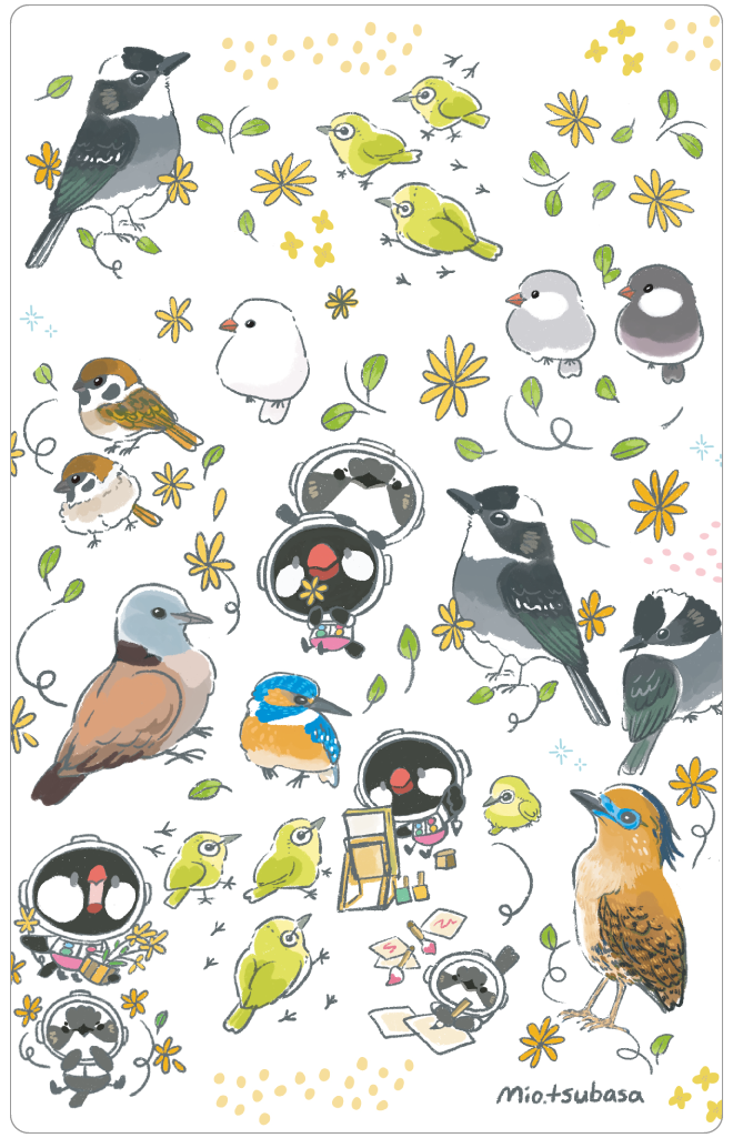 Mio.tsubasa 是以野鳥插畫為核心的創作品牌,透過原創角色 「宇航員 MIO」,將可愛鳥類形象與自然生態之美結合。