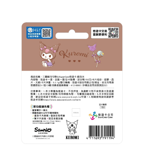 內容物:悠遊卡一張、封套一張。