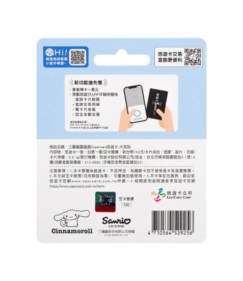 2.本卡採空卡販售(可用額度為零),可重複加值使用,詳細使用辦法請參閱內附之使用說明。