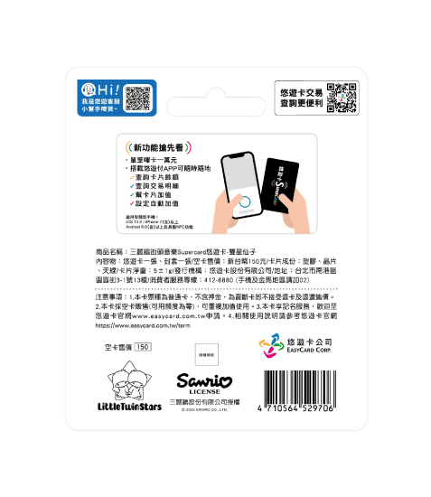 2.本卡採空卡販售(可用額度為零),可重複加值使用,詳細使用辦法請參閱內附之使用說明。