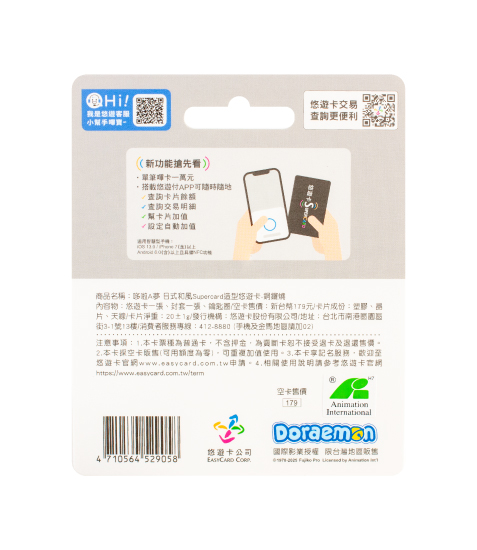 內容物:悠遊卡一張、封套一張。