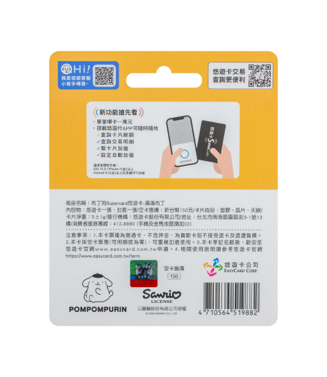 2.本卡採空卡販售(可用額度為零),可重複加值使用,詳細使用辦法請參閱內附之使用說明。
