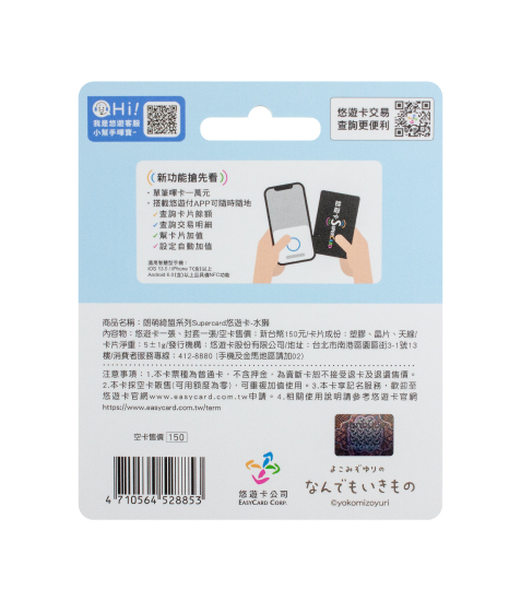 2.本卡採空卡販售(可用額度為零),可重複加值使用,詳細使用辦法請參閱內附之使用說明。