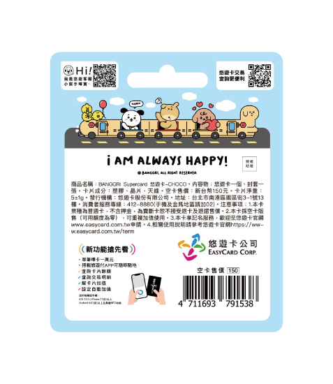 1.本卡票種為普通卡,不含押金,為賣斷卡恕不接受退卡及退還售價。