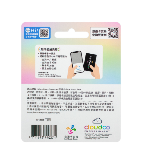 1.本卡票種為普通卡,不含押金,為賣斷卡恕不接受退卡及退還售價。
